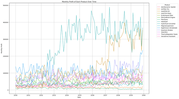 Monthly Profit of Each Product Over Time in CSV file format.