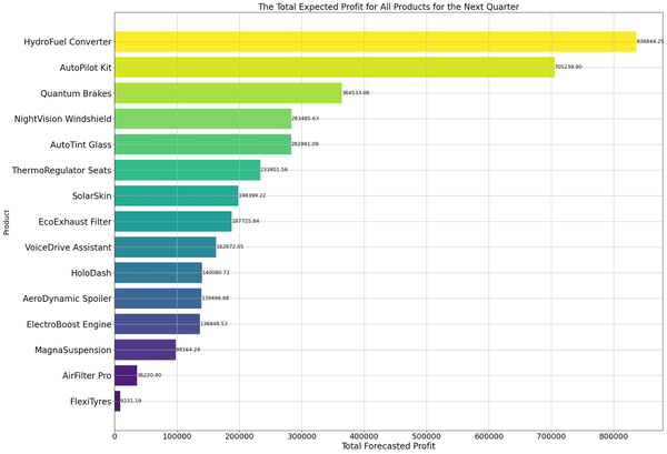 The total expected profit for all products for the next quarter.