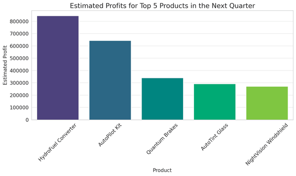 Here's a table displaying the estimated profits for the top 5 products for the upcoming quarter: