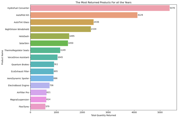 Most Returned Products For All the Years.